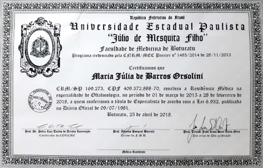 Primeira consulta Oftalmologia